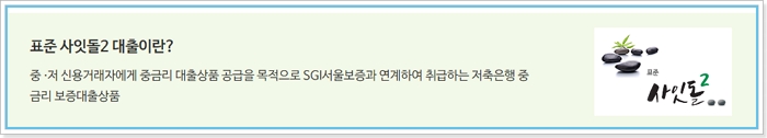 중 ·저 신용거래자에게 중금리 대출상품 공급을 목적으로 SGI서울보증과 연계하여 취급하는 저축은행 중금리 보증대출상품입니다.